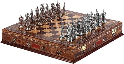 Amazoncom Historical Spanish Royal Guards Metal Chess Set For Adultshandmade Pieces And Natural Solid Wooden Chess Board With Pearl Design Around Board And Storage Inside King 265 Inc Toys Games